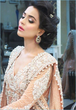 Humaima in really lovely makeup and a pastel dress.