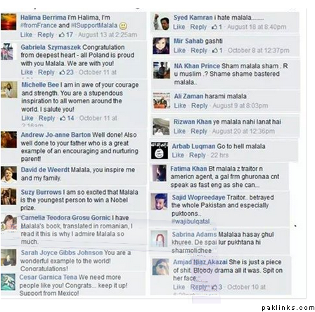 Allah(swt) aap ko sahi raasta dikhaye. Aap ki nafrat Malala ke liye mujhe samajh nahi aati. Mujhe bahut dukh aur afsos hai ke duniya ke logon usse pyar de rahe hain aur Pakistan mein log usse nafrat karte hain.