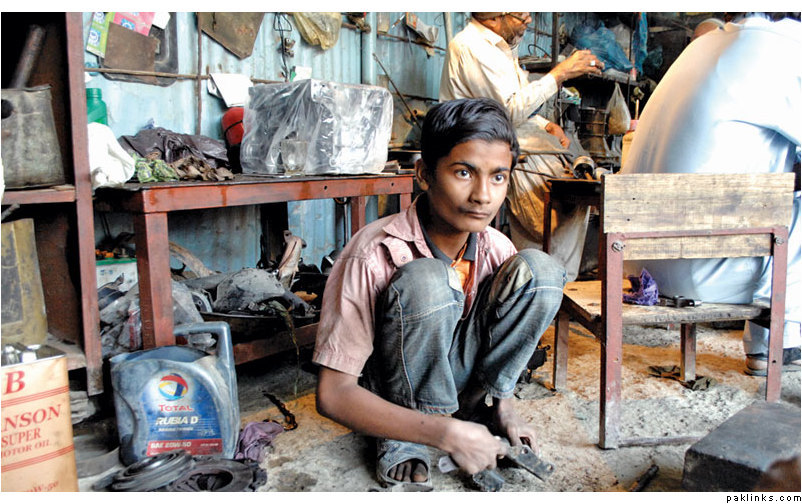 Pakistan duniya kay taraqi pazeer mumalik main shumar kiya jata hai- Ziydah tar mazdoor tabqay kay haqooq uskay malik gasab kar laity hian- Dunya main taraqi yafta mumalik kay han bhi child labor ka concept paya jata hai- Mager usaky kuch asool waza hain, jaisay kam say kam umer 16 saal muqarar hai.