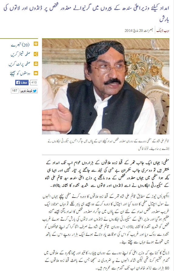 امداد کیلئے وزیراعلیٰ سندھ Ú©Û’ پیروں میں گرنیوالے معذور شخص پر ÚˆÙ†ÚˆÙˆÚº اور لاتوں Ú©ÛŒ بارش – ایکسپریسس اردو](http://www.express.pk/story/237676/)