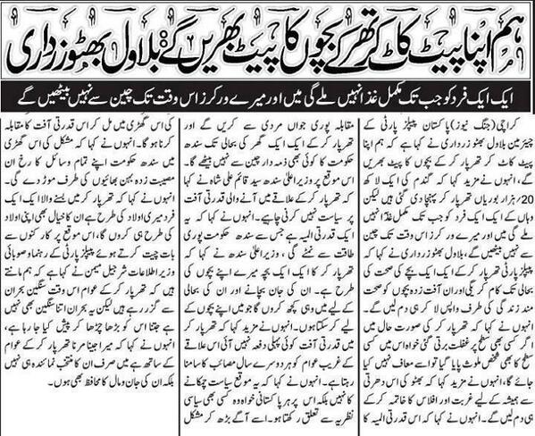 Billu nay kah dia hay kah Ghurbat aur Aflaas ko Bhutto key dharti say khatam kar kay dum laina giay, Ya Elahi kahir he ho thar kay bashindoon key :hinna: