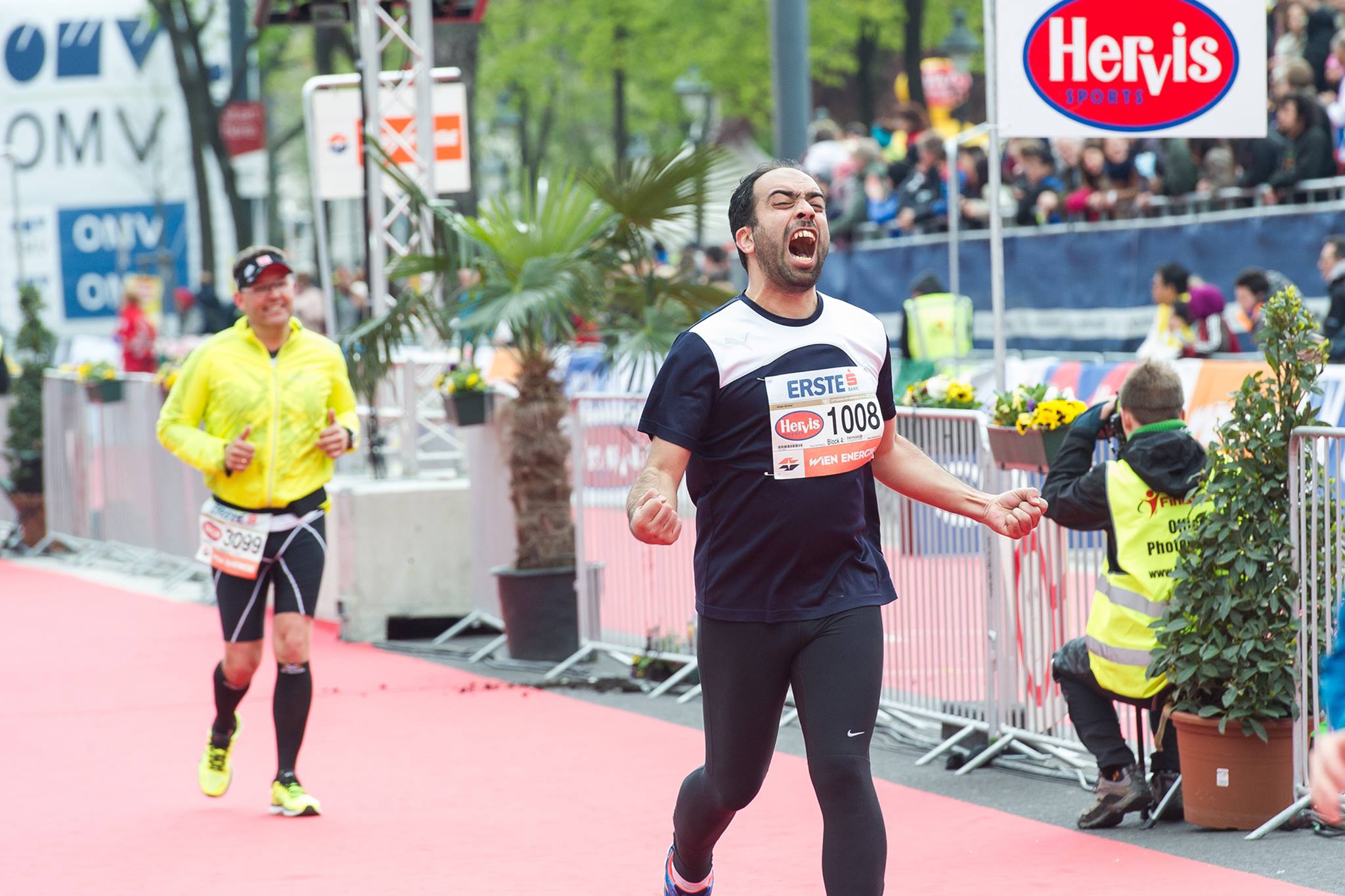 This picture was taken when I crossed the finish line of the 2016 Vienna City Marathon: