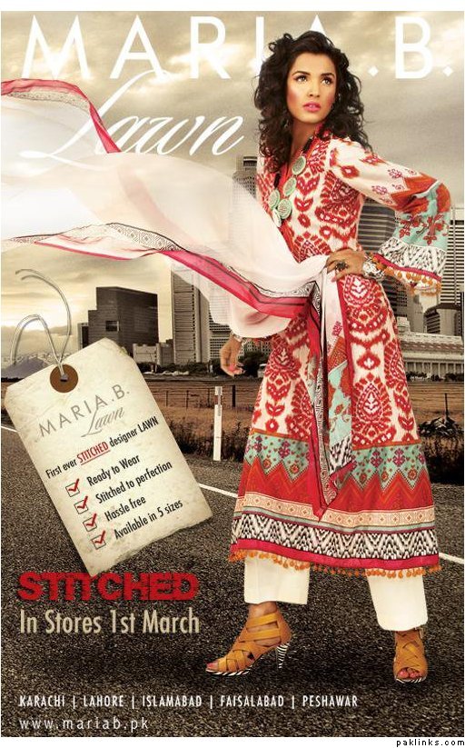 MARIA B. Lawn is ready to wear this time, stitched to perfection and will be available in five sizes, NATIONWIDE from March 1st!!