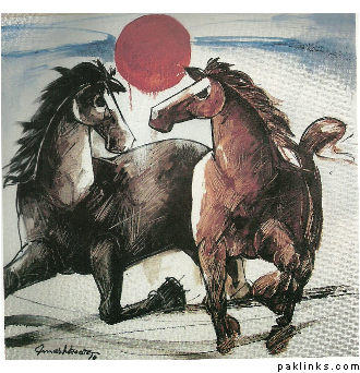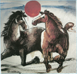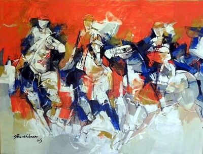 His paintings on diverse subjects and his handling of the media have earned him national awards and the appreciation of media and public taste. He is a versatile artist workin gin abstract, figurative or calligraphic methods always with vigor and dynamic symbolism.