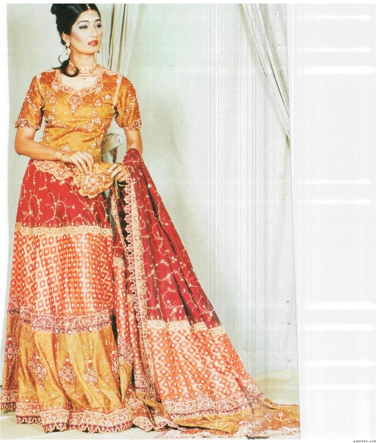 Thanks sheal and stylobabe - so let me get this straight sharara is the one which is like a skirt - gharara has two legs and ghagra is the one which comes has a bit straight from above till the knees and then has chunats neechay say...i.e. like in the ppic..?