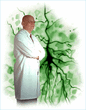I painted the background in watercolor, scanned and uploaded in an image editing software, then superimposed the physician over it to create the backsplash of a topic in a brochure.