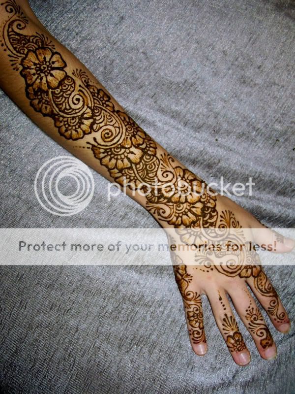 It takes anywhere from 25 minutes to 45 minutes to do a full arm like that. The Indian bridal style took a bit longer, but then I was sitting on the floor in an a very uncomfortable spot!