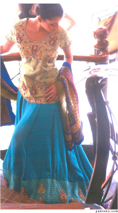 Why don't you have a look at the outfit worn by hema malini in veer zaara the lodi song - yellow and blue - its absolutely gorgeous