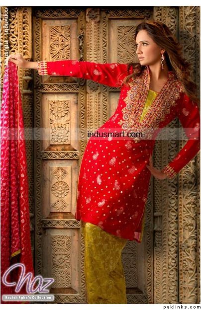 I got a really beautiful outfit made for my brother's mehndi it was by a website that I discovered a while back and am so totally in love with it. It was a yellow dupatta heavily filled with multi colour gota and other work and the shirt was red and beautifully embroideried on the neck sleeves daman and all over and the shalwar was multi colour lines it's some traditional fabric I dont know the name. I got it made for only $260 it was totally totally worth it. You guys should check it out.