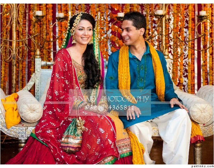 I guess it depends on what colour you’re wearing on the wedding day too - she wore a simple gharara type red and green outfit cos it was completely different from the wedding day one