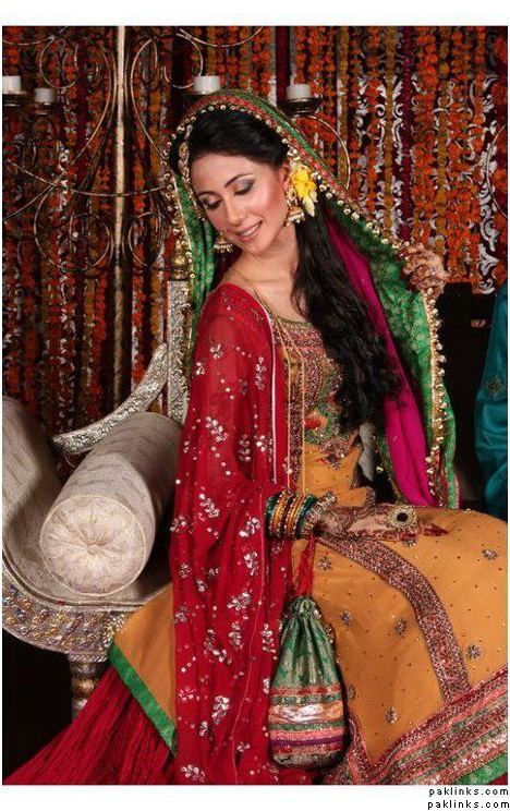 I have seen brides wear red - but rarely, does someone has nice pictures of a nice red + some color mehndi dress - plus I want to wear something like that because I am having my nikkah the same day too!
