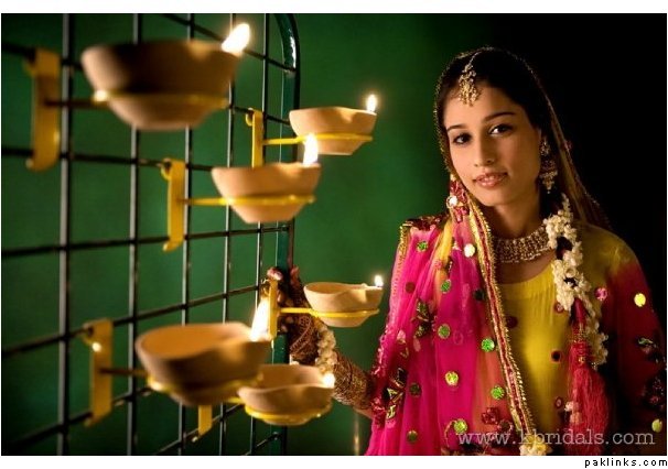 So gorgeous! Love the backdrop against her clothes. And the diya's too.
