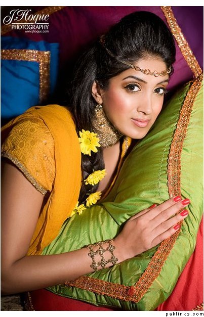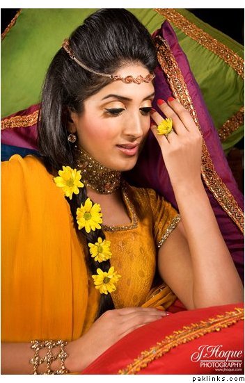 on my mehndi, i put my hair back and had it braided into a plain black paranda (my nani's paranda). Then i brought the braid to the side and put in artificial flowers all the way down the length of the braid.
