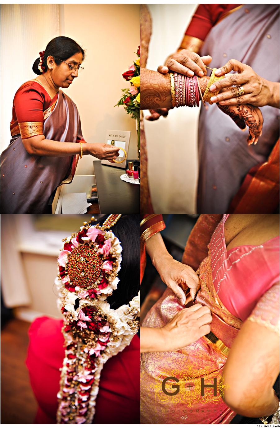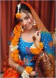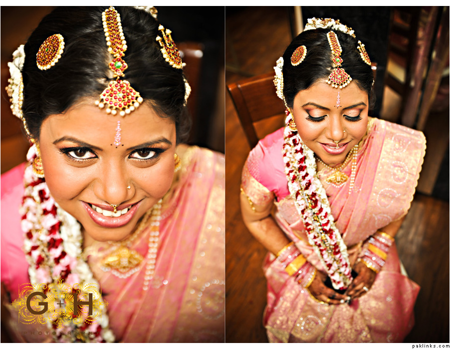 If not, then a few flower (esp. motia) strands just wrapped around the bride’s choti would create the desired effect. Don’t forget to secure them with invisible pins. Like this: