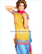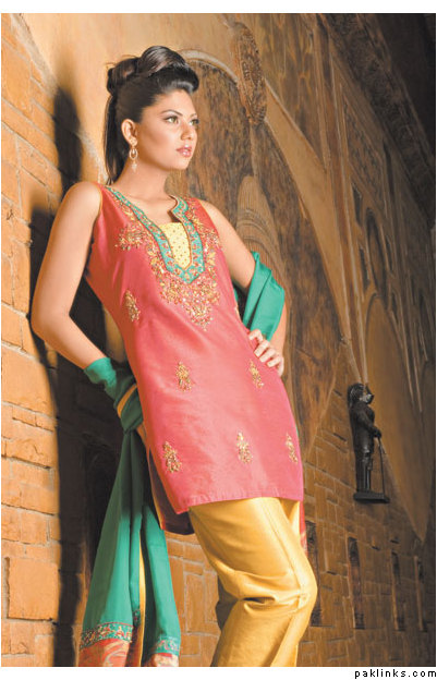 A friend of mine wore a gorgeous yellow kara dupatta (the hyderabadi outfit) with very delicate turquise and coral colored kaam. it looked really beautiful on her.