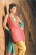 I had the chunnri/tie-dye sharara -- yellow, rust, and red. I really love that suit.