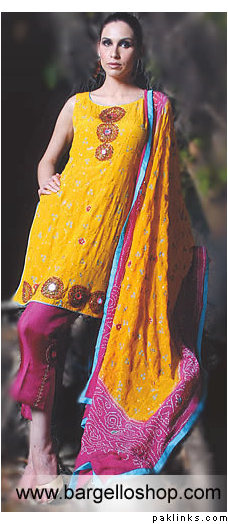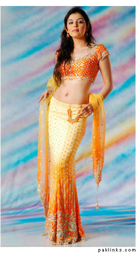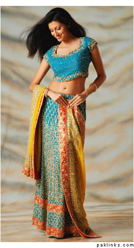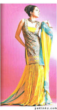 i have a question- i want to do mehendi green, yellow, turqoise and red at my mehendi. i dont have any problems with a red and yellow outfit for the girls, and mine is the one from bargello- im sure you girls have seen it- the yellow-fading-to-dark-green crushed silk gharara with the red, yellow, blue dyed crushed silk dupatta? that will go with the girls.
