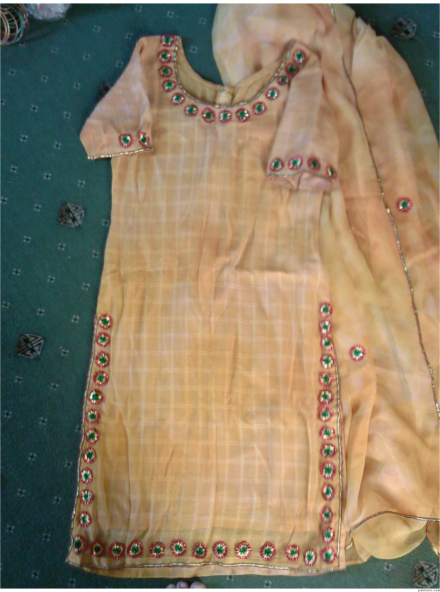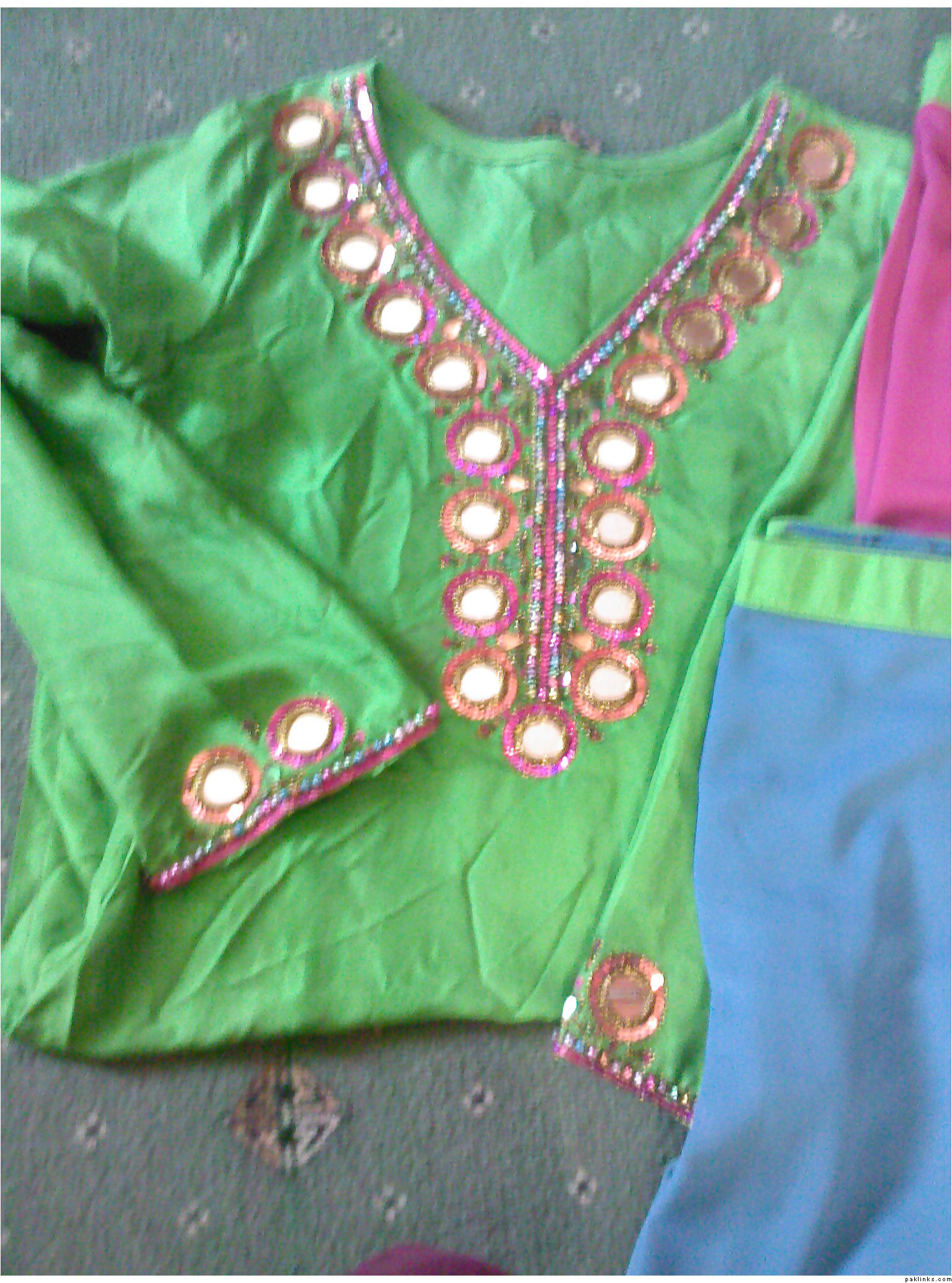 i just got my mehndi outfit made in pakistan, i love it! alhamdulilah its come out better than i imagined..i designed it myself and got it made... my main colour is green, with pink, orange and yellow in the kaam, thread (around the mirrors) and i got the dubatta dyed green yellow and pink with a border of mirrors (with different colour threads) going all the way around :-) ...it sounds like a mess lol but its really pretty looking (hope it luks nice on the day)