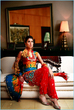 I can remember two mehndis Ive been to when the brides were wearing saris. One was wearing green and the other was yellow. Both saris were rather simple, but the girls both looked elegant and lovely!