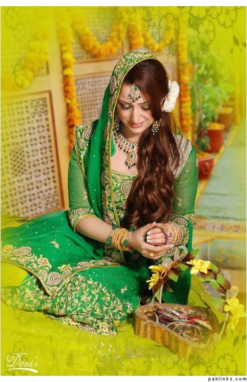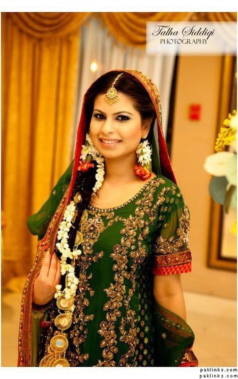 Bottle green with gold kaam: {Real Wedding} Sudaf & Majid’s Mehndi |