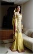 then there was my cousin who went simple and looked gorgeous at her mehendi in a pale yellow chiffon long-sleeved anarkali with gold gota on the edges of the dupatta and gold kaamdani over the whole shirt. she wore a churidar with it and she had the ghoonghat on her face. her mehendi was a smaller, simpler affair so it worked really well. she wore really pretty flower jewellery with it all.