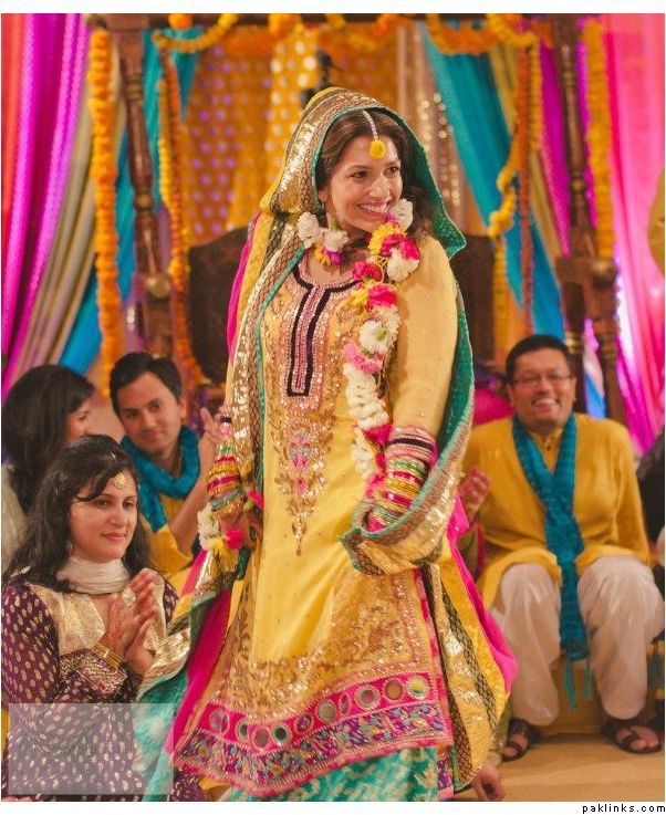 on my mayoon I kept everything simple n only girl's party peela jora floral jewlary ubtan tail n halla gulla. mehndi was bigger affair wth both male n females I wore bit heavy lengha wth kundan jewlary n rest same mehndi rasm n dholki n bhangras by boys