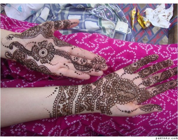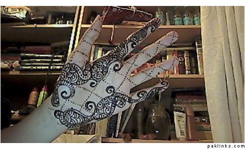 Here’s the pic of my one hand mehndi last eid and what I did for my cousin Sara in pak last year… I ripped off the design from a girl in the village whos mehndi we went to (except hers was much much better!)