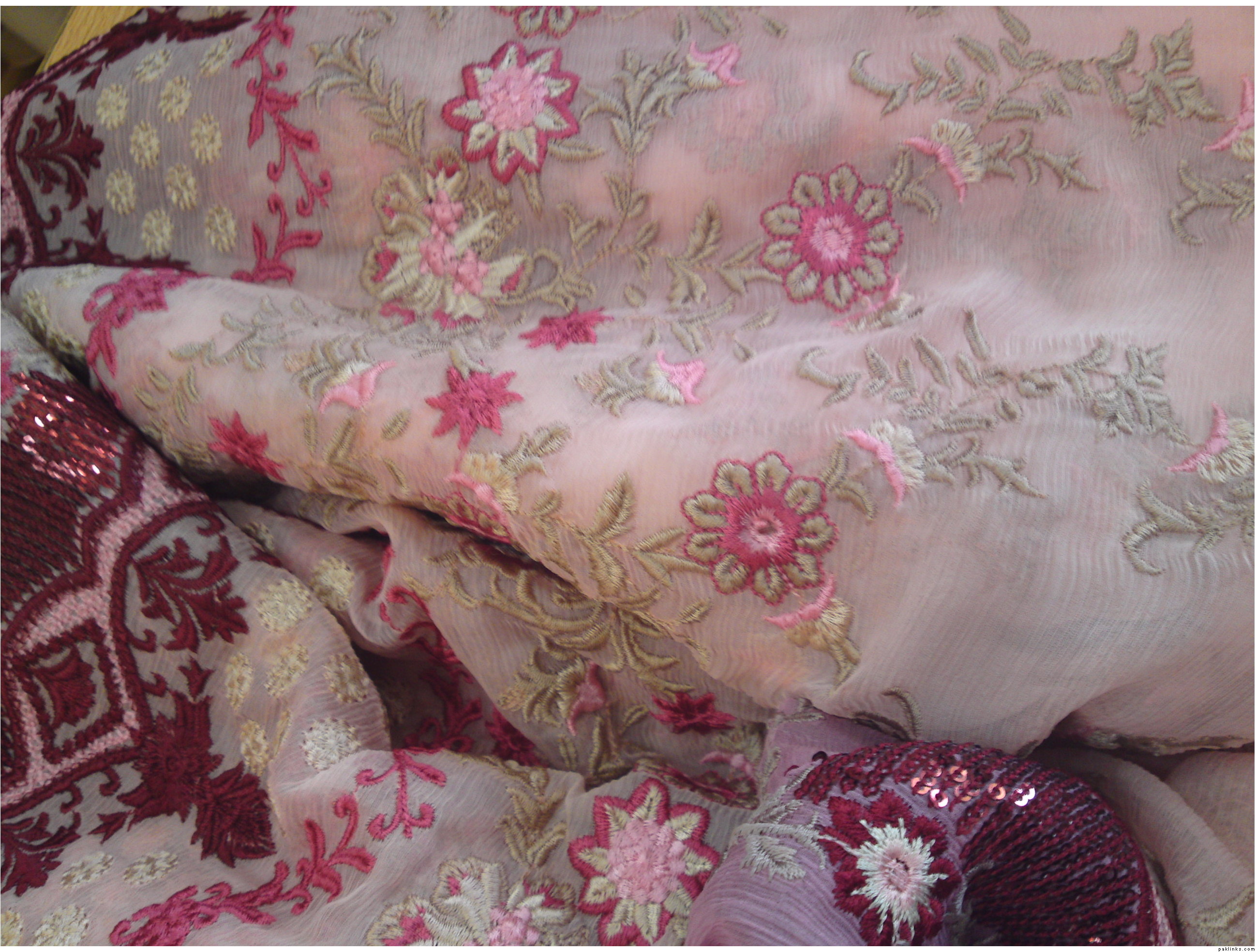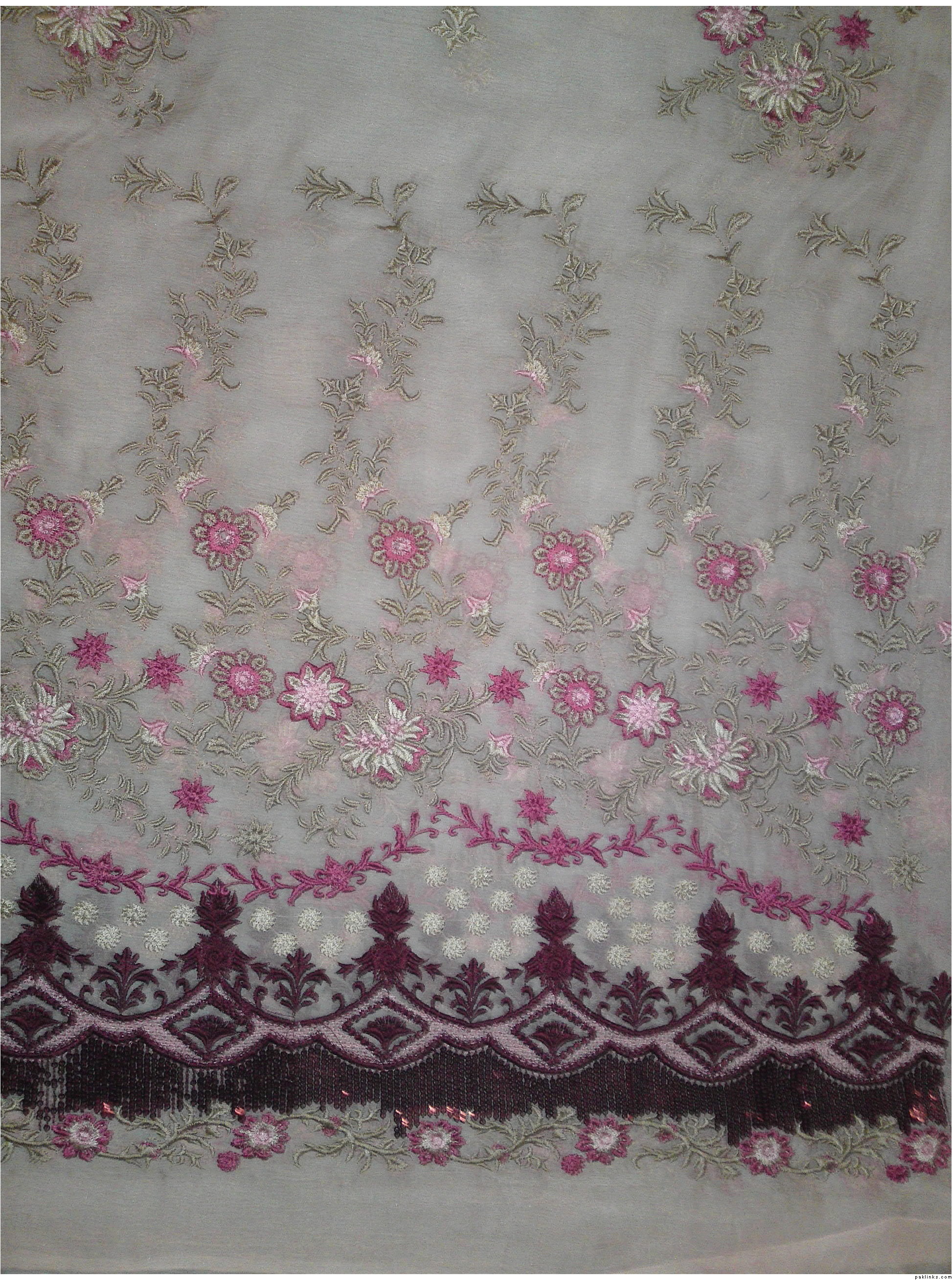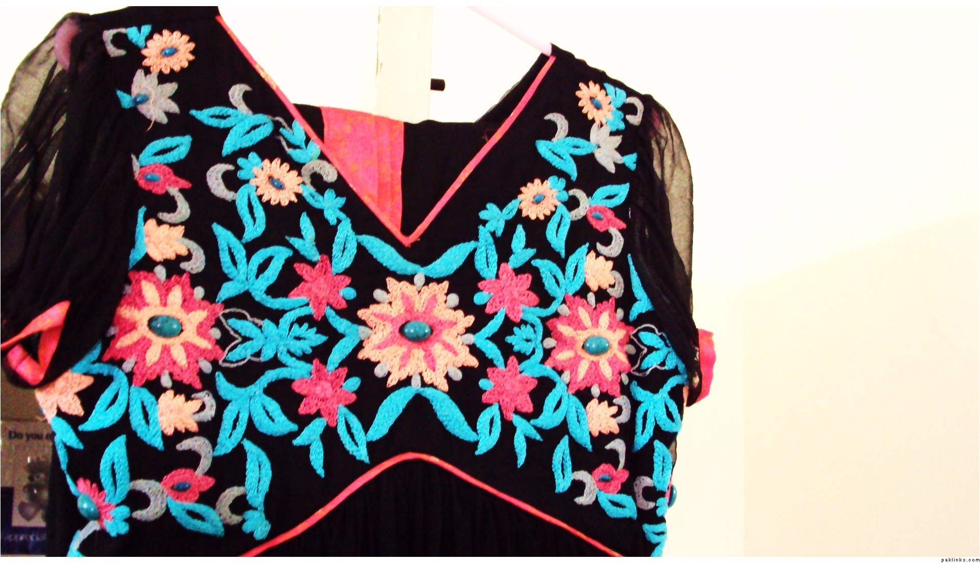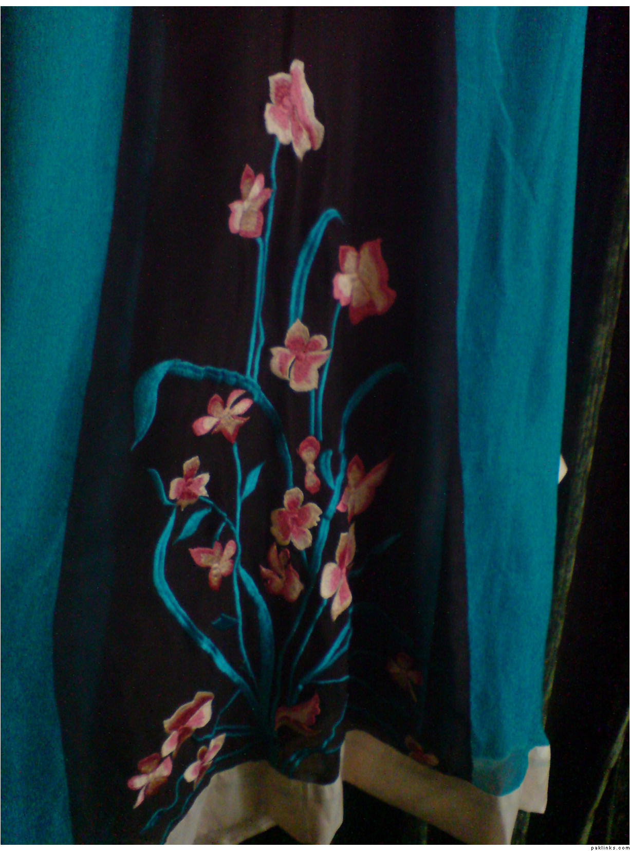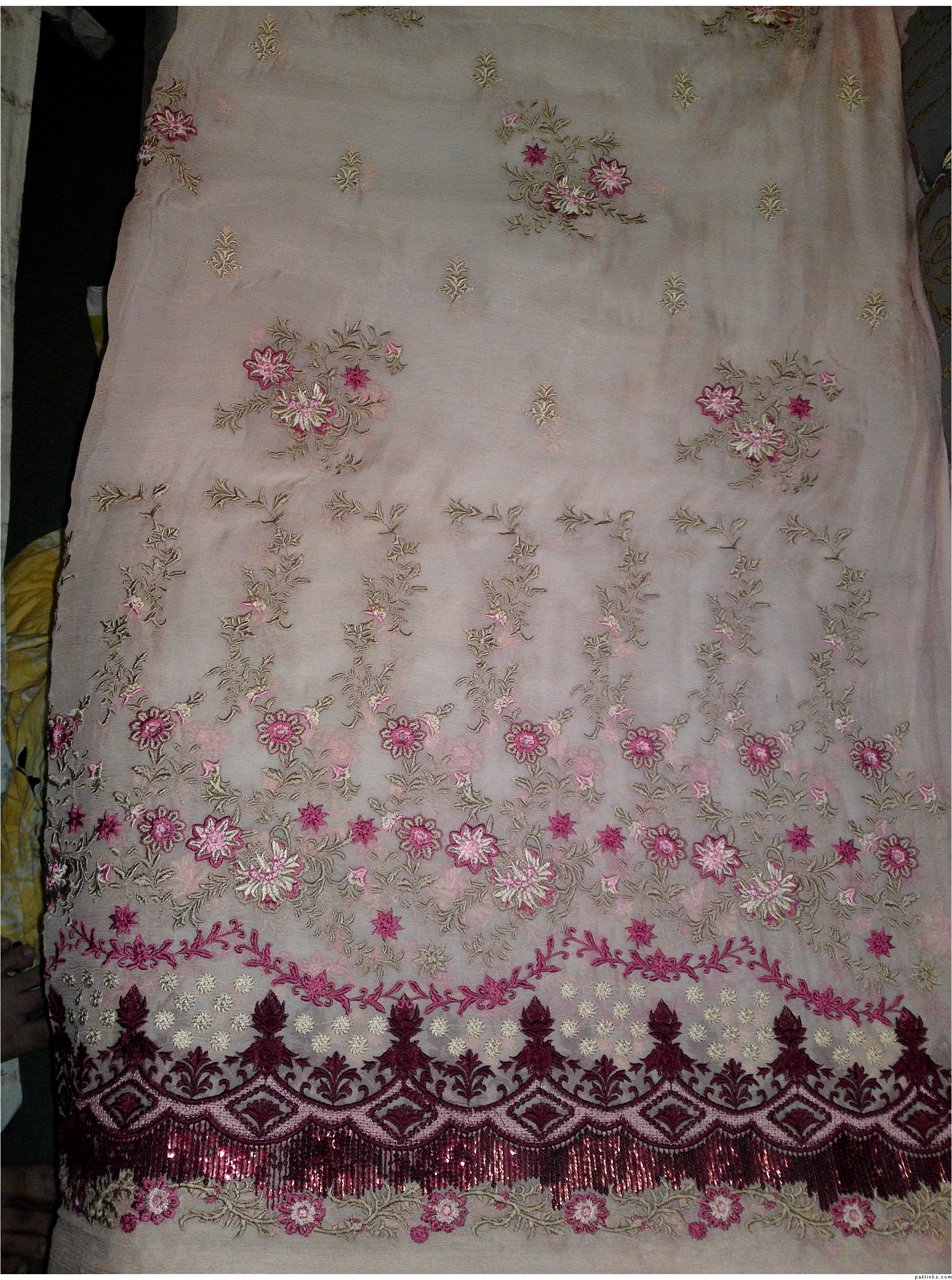 dupatta and daaman of shirt are with embroidery and sequins with plain shalwar/trouser