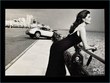 Perhaps in third picture she crashed the car and now waiting for her man to come fix the problem.
