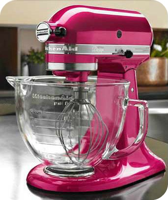 And the only difference between this pink one and the other is that it has a glass bowl (which is microwavable, and the steel ones are readily available for $20 or so) and it’s about double the price at $380 but I’ve wanted it for ages and ages so I wouldn’t be content with a “normal” looking one. And the bowl is 5.5 quartz. AND THE COLOR IS GORGEOUS.