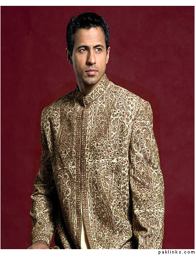 I guess it's just me, but I think there's something very UN-manly about men wearing clothes with lots of embroidery, paisley, etc etc on their clothes. IMO, men's sherwani's should be simple, with a minimum amount of work that accents a great cut, fit, and fabric.