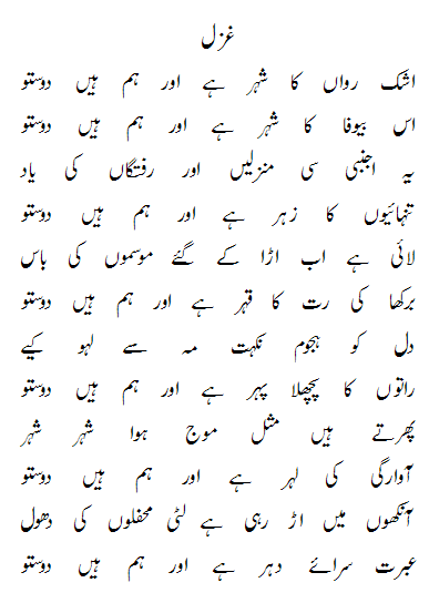 by your poetry sharing, i think you look to be an inqalabi type person, and believe on equal rights, i think you will next share faraz’s poetry…faiz ki i dont know aap ko woo ghazal kion nai pasand…