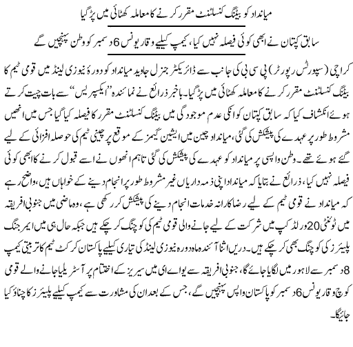 It was good Idea to have somebody like Miandad as batting consultant but because it was a good idea and apparently had better results from our batting side.. board has not pursuing the issue any more… here is what one news paper ( Express) has to say: