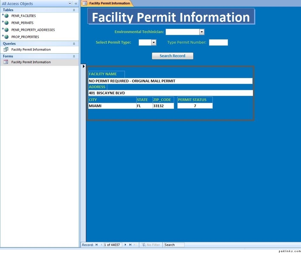 Can someone here help me with access? I want to pull data after I select "Permit Type, and search by “Permit Number” and then rest info automatically after I make the selection like: