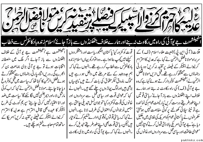 But who will distance him ( Fazl) from the military, all his politics revolves around the happiness of Military establishment, This is 1st time he spoke against them? what happened? i understand no more funds for him from Libya but what happened with GHQ?