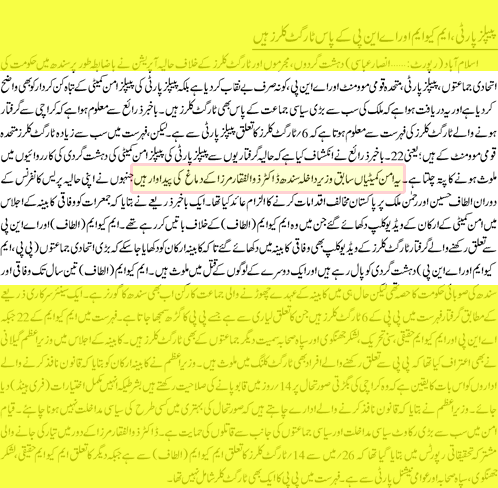 It has played major role in killings since last more than two decades though others are also involved and all should be brought to justice. But again it was Zulfiqar Mirza who has played key role in changing the direction of Karachi politics, for which credit goes to him.