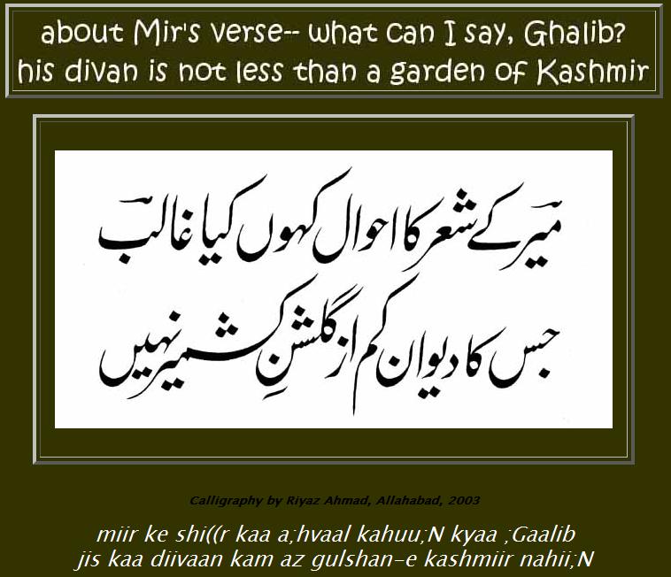 Re: MIR TAQI MIR'S shaa'irii according to GHALIB