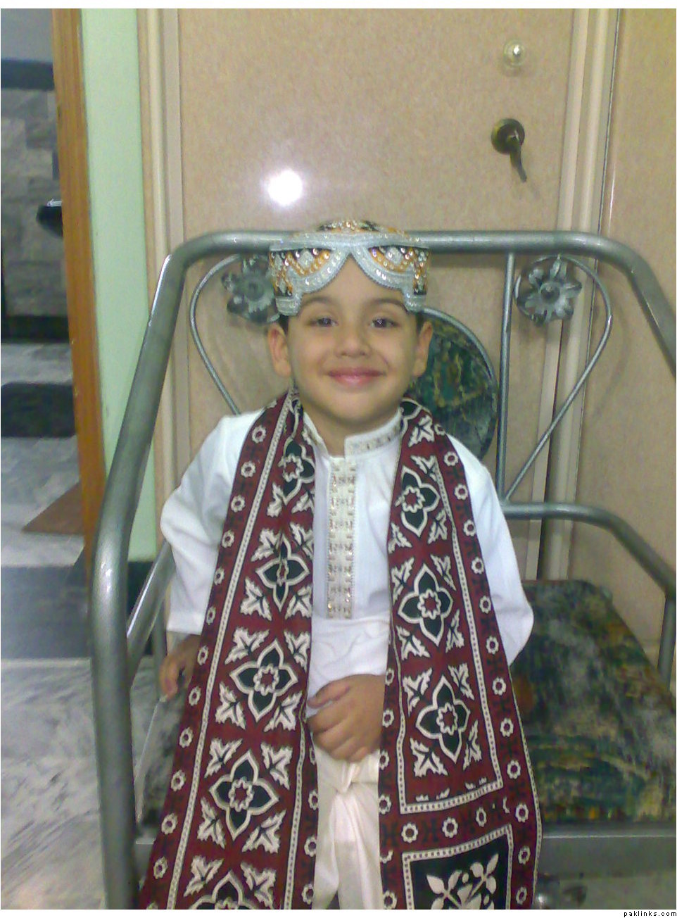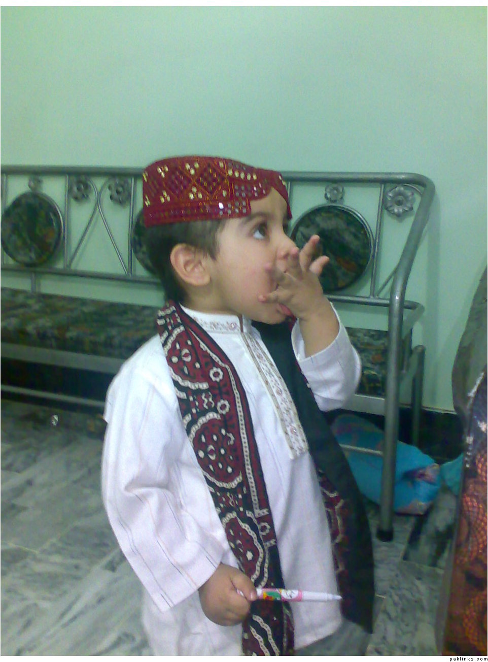 @Decent^Munda…awww tumhara bhanja kitna pyaara lag raha hai ajrak topi-duppatte main. mashallah