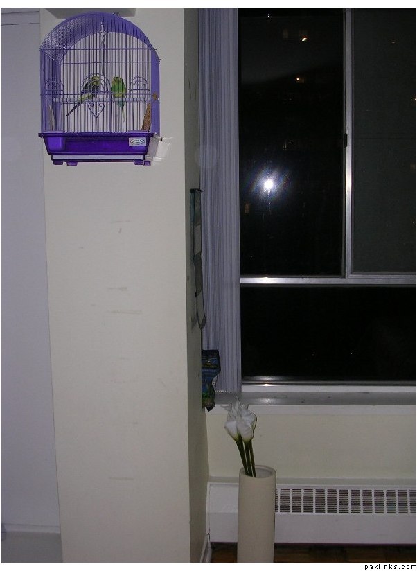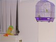 hahahahaha .. ok wat happened was when I was back home.. our parakeet’s cage was on a kitchen’s floor. And I was standin by the cage holdin tootsie. She was tryin to get away so I let her go and she sat on a top of the cage