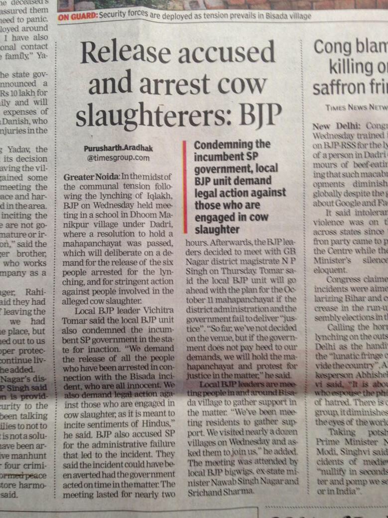 A 50-year-old man, Mohammad Akhlaq, was beaten to death and his 22-year-old son severely injured on Monday night in UP’s Dadri, allegedly by residents of Bisara village, after rumours spread in the area about the family storing and consuming beef, police said. - See more at: Dadri: Mob kills man, injures son over ‘rumours’ that they ate beef | The Indian Express