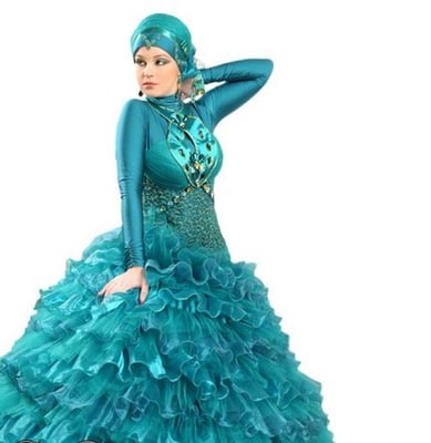 In my opinion, if you want to wear a western style evening dress best to buy one locally and make it hijab friendly like Arab girls do.