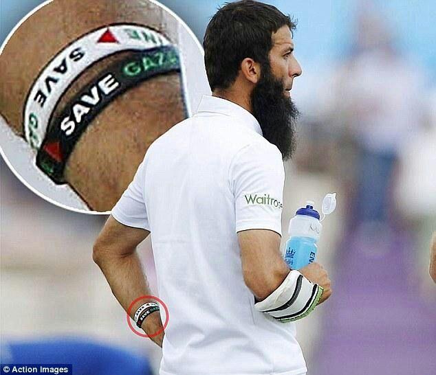 English cricketer Moeen Ali had been wearing two wrist bands about Gaza while playing against India. ICC has recently banned him from wearing such bands presenting the logic that they are trying to keep Cricket away from politics.