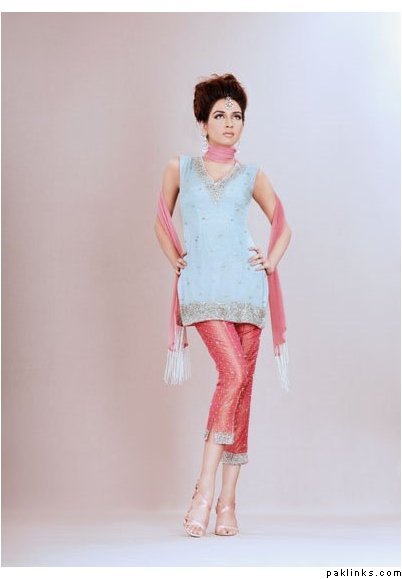 his collection was on paki tv channel yesterday morning. I loved the outfits. especially the shalwar kamiz designs. he's doing alot of the short fitted shirts paired with capris or cropped pants. his bridal wear is nice..not too heavy kaam on it.