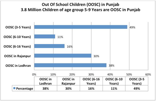 3.8 million Children from the age group 5-9 years are out of school in Punjab.