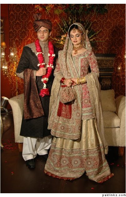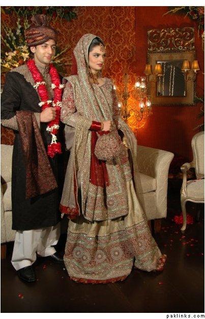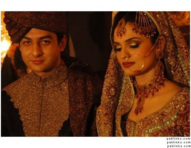 yeah i saw her wedding pics in bridal pics thread but cant find them now ather shezad n hsy were also present on her wedding n she was wearing mohd mehdi dree on her valima plz share her pics of barat :)