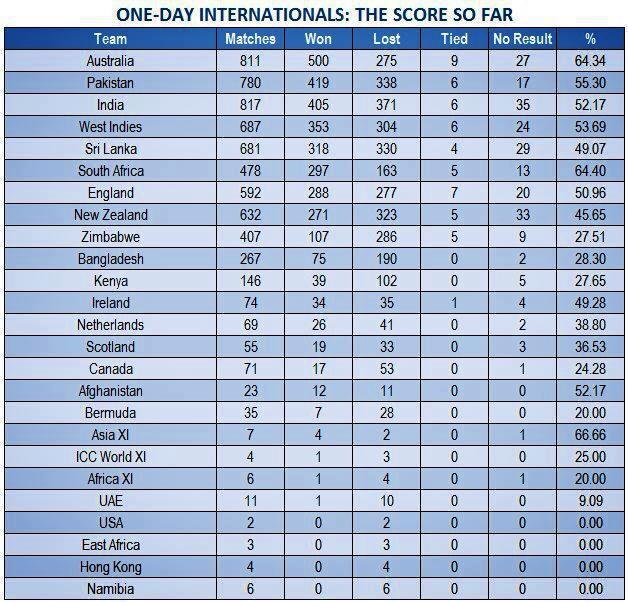 Re: Most ODI Wins Ever------Australia on top with 500 Wins