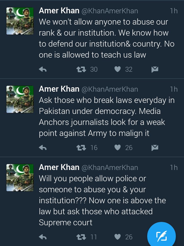 This is real sad incident, few army officers destroying the image of whole institution and thid guy at tweeter what does he trying to say? He or army can do everything??? Well my friends army…no matter what size and kind and religion doesnt stand a chance if it doesnt have backing of Bloody Civilians!!!