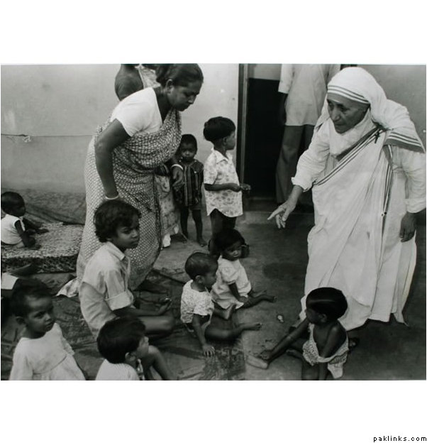 Regarding mother Teresa, try google her pictures. You will see hundreds of her pictures and many of them holding a child, with a group of people and more.