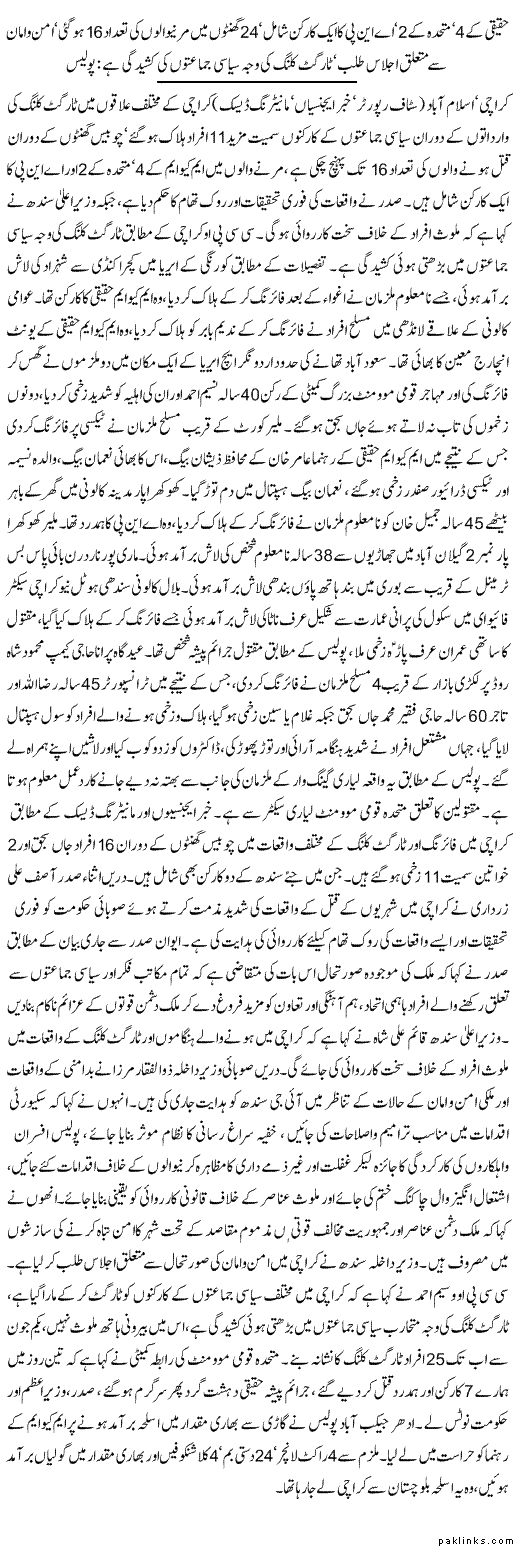 More over target killing in KARACHI also killed 16 ppl including members of different political parties.