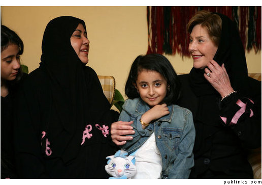 …looks very picturesque. Mrs. Bush met with breast cancer survivors and members of their families to discuss awareness issues. I remember Nancy Pelosi’s trip to Syria where she also wore Hijab. These genstures do make a quick and suasion imperssion.